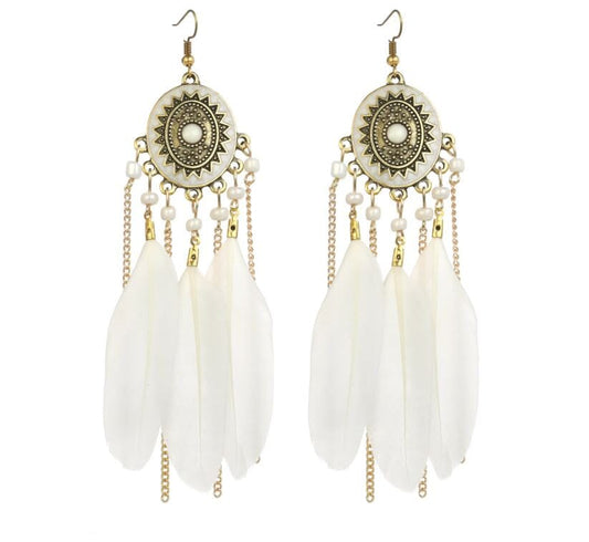 Women Girl Teen Bohemian Feather Tassel American Indian Earrings