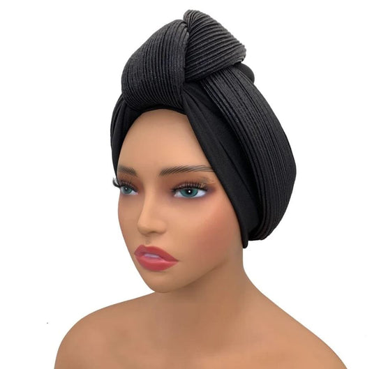 Women African Glitter Turban Beanie Knotted Head Auto Gele Wrap Hat