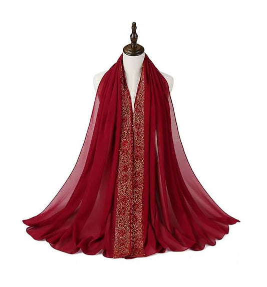 Women Chiffon Gold Beads Muslim Head Scarf Hijab