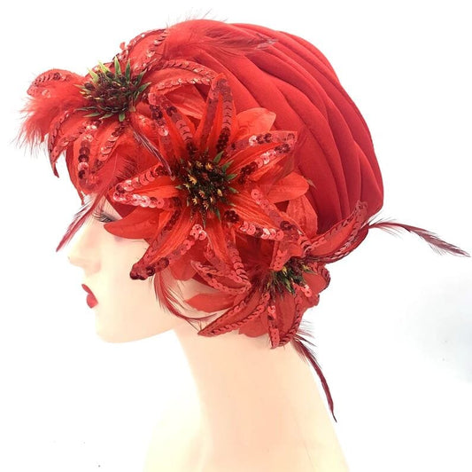 Women Pearls Beading Flower Head Wrap Turban Head wear
