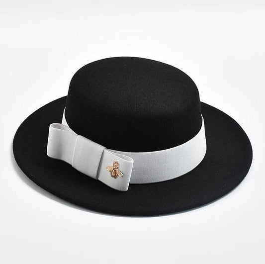 Women Wool Vintage Bowknot Church Cocktail Derby Beret Hat