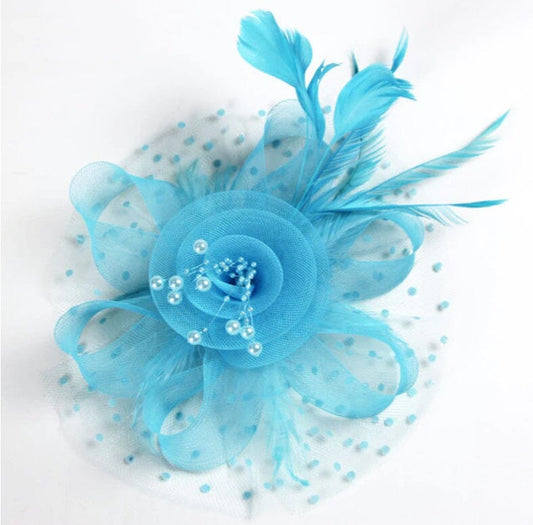 Women Flower Mesh Feather Fascinators Hat Headband and Clip tea Party Headwear_