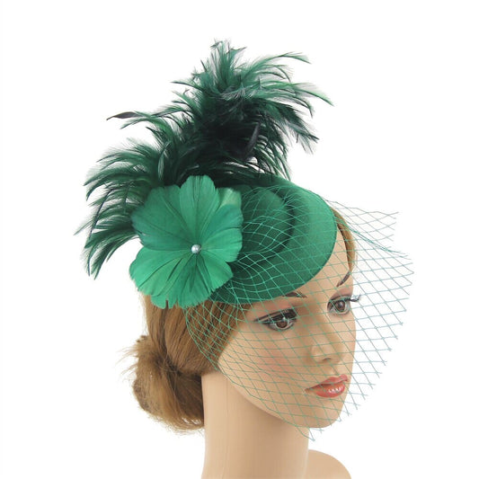 Women Fascinators Hat Tea Party Headband Kentucky Derby Wedding Cocktail Flower Mesh Veil Feather Hair Clip_