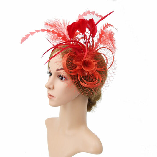 Women Tea Party Fascinators Hat Feathers Flower Veil Wedding Cocktail Headband