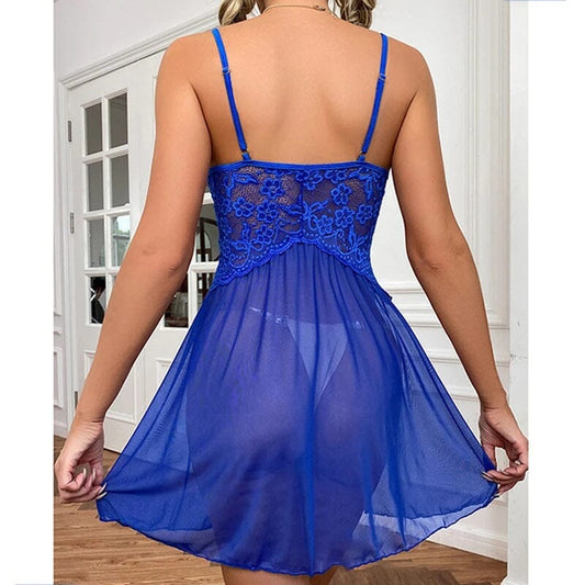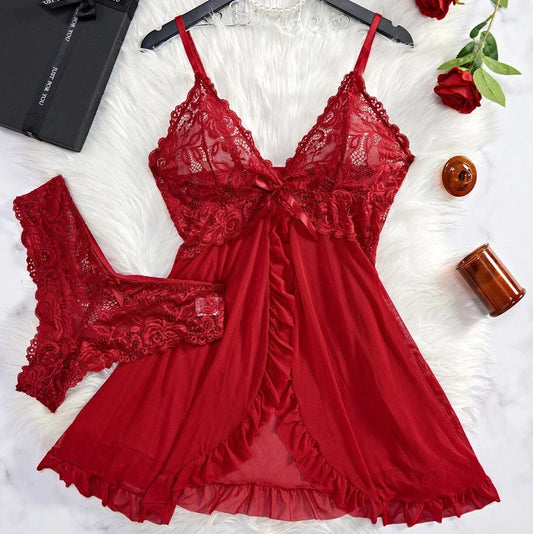 Women Sexy Lace Badydoll Mesh Nightgown Sleepwear Lingerie with panty