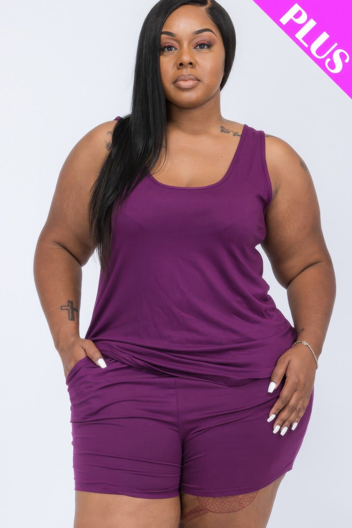 Plus Size Comfy Tank Top & Shorts loungewear Set_
